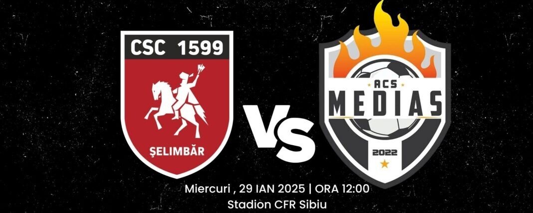 ACS Mediaș își dă întâlnire la Sibiu, pentru al doilea test de verificare al iernii cu echipa, CSC 1599 Șelimbăr. Partida va avea loc miercuri 29 ianuarie, de la ora 12:00, pe Stadionul CFR Sibiu.