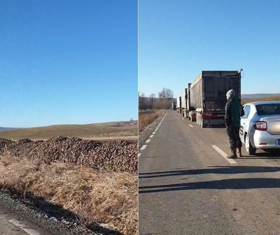 VIDEO: Primarul Liviu Modoi a filmat într-o zi lungul șir de camioane pline de sfeclă. Acum camioanele vin noaptea