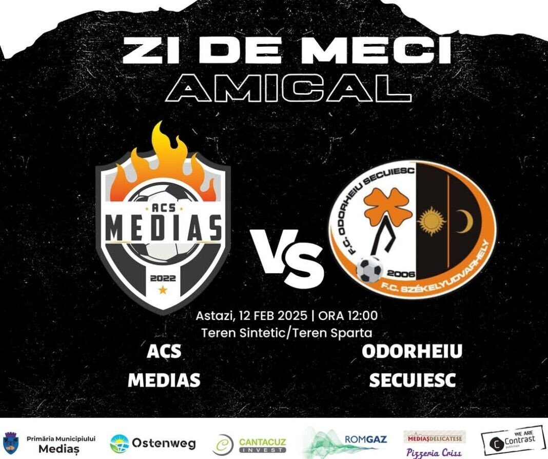 Zi de meci pentru fanii fotbalului din Mediaș. AFC Odorheiu Secuiesc vine la Mediaș, pentru al 5-lea test al perioadei de pregătire, începând cu ora 12:00. În funcție de starea terenurilor și a vremii, meciul va avea loc pe Terenul Sintetic 8 Mai sau Terenul Sparta.