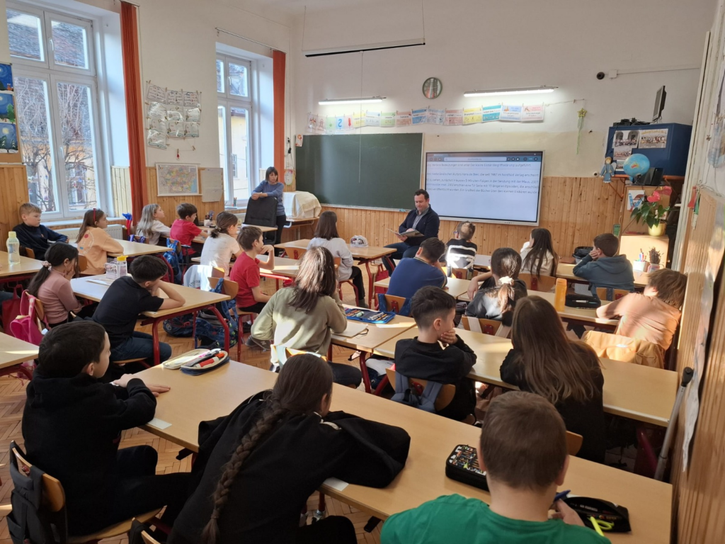 📖 Paul Kuttesch, vicepreședinte, a adus un strop de magie literară copiilor de la Școala Gimnazială nr. 2, Sibiu.