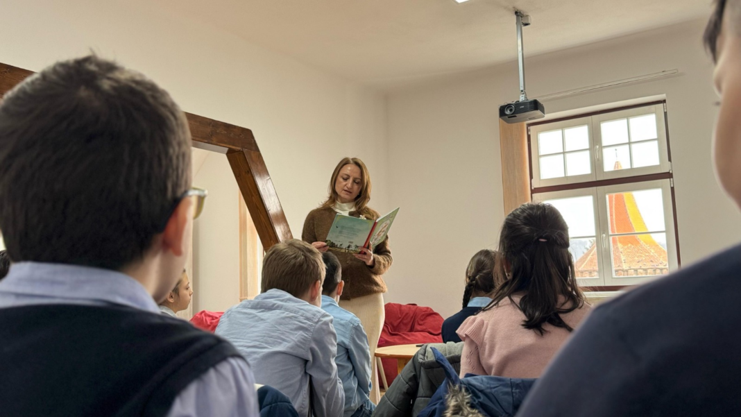 📖 Daniela Cîmpean, președinta CJ Sibiu, a citit cu emoție copiilor de la Școala Gimnazială din Cristian.