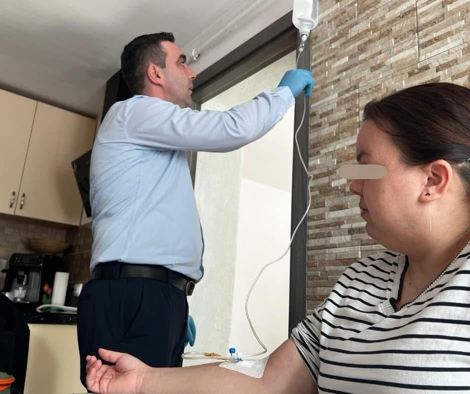 Pe pacienta primarului, redevenit ad-hoc asistent medical, am găsit-o în casa familiei, la marginea comunei. Are încredere că este pe mâini bune și că se va face bine. A pregătit o farfurie cu gogoși proaspete, mirosul de vanilie acoperind bucătăria devenită sală de tratament. „Primarul ne pune perfuzii, ne face injecții și ne pansează. Are grijă de noi”, spune femeia, îndemnându-ne totodată să gustăm gogoșile calde.