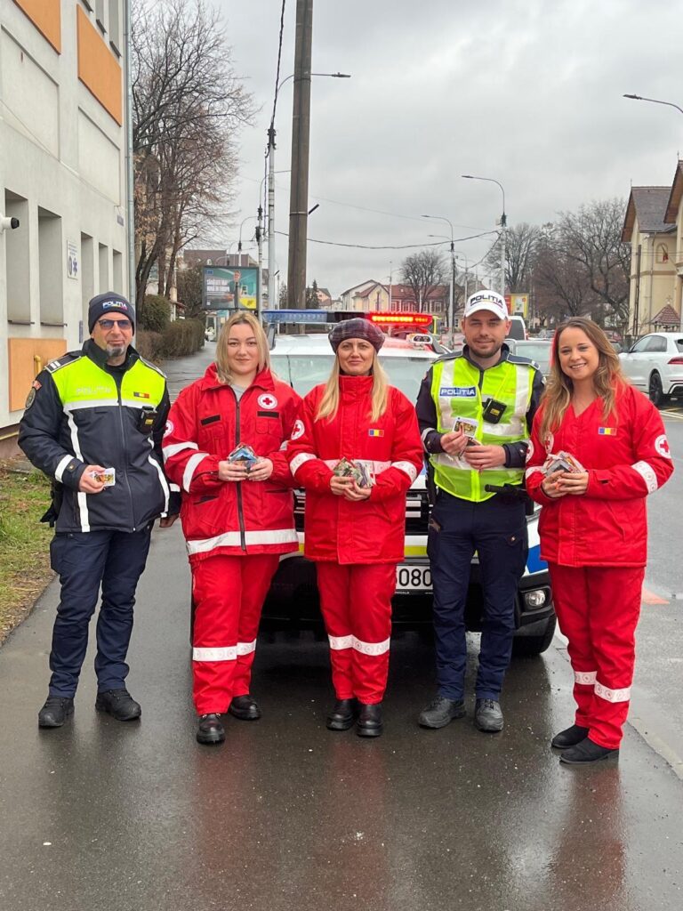 La rândul lor, voluntarii Crucii Roșii s-au alăturat acțiunii, oferind mărțișoare realizate manual și mesaje de primăvară. „Am fost onorați să ne alăturăm echipajelor Serviciului Rutier din cadrul Poliției Sibiu și să oferim participanților la trafic cele mai frumoase simboluri autentice ale primăverii. Știm că le-am purtat noroc!”, au declarat reprezentanții Filialei Crucea Roșie Sibiu.