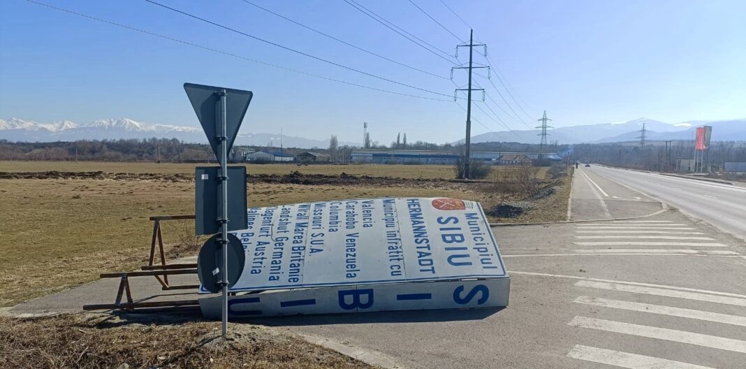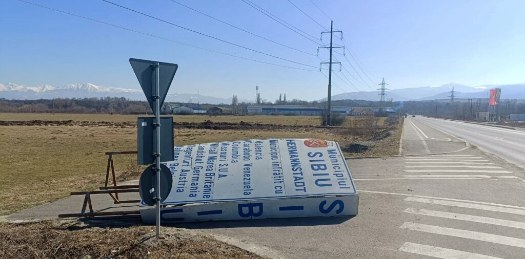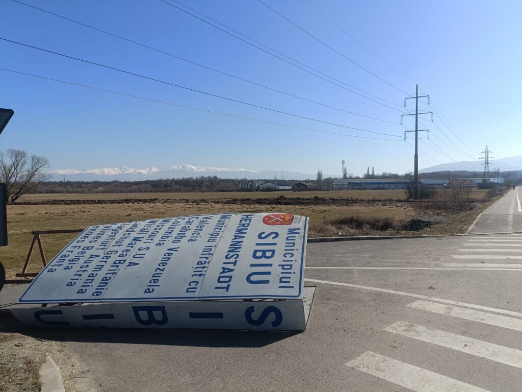 Panoul informativ se află la ieșire din Cartierul Arhitecților spre Cisnădie, în zona fabricii de lapte Seviș, mult prea departe de intrarea oficială în municipiu. Nu se cunoaște cu exactitate dacă panoul a fost aruncat acolo, luat de vânt sau doar răsturnat. În acest sens, jurnaliștii Sibiu Independent au cerut date concrete reprezentanțiilor Primăriei Municipiului Sibiu. Revenim cu răspunsul acestora!