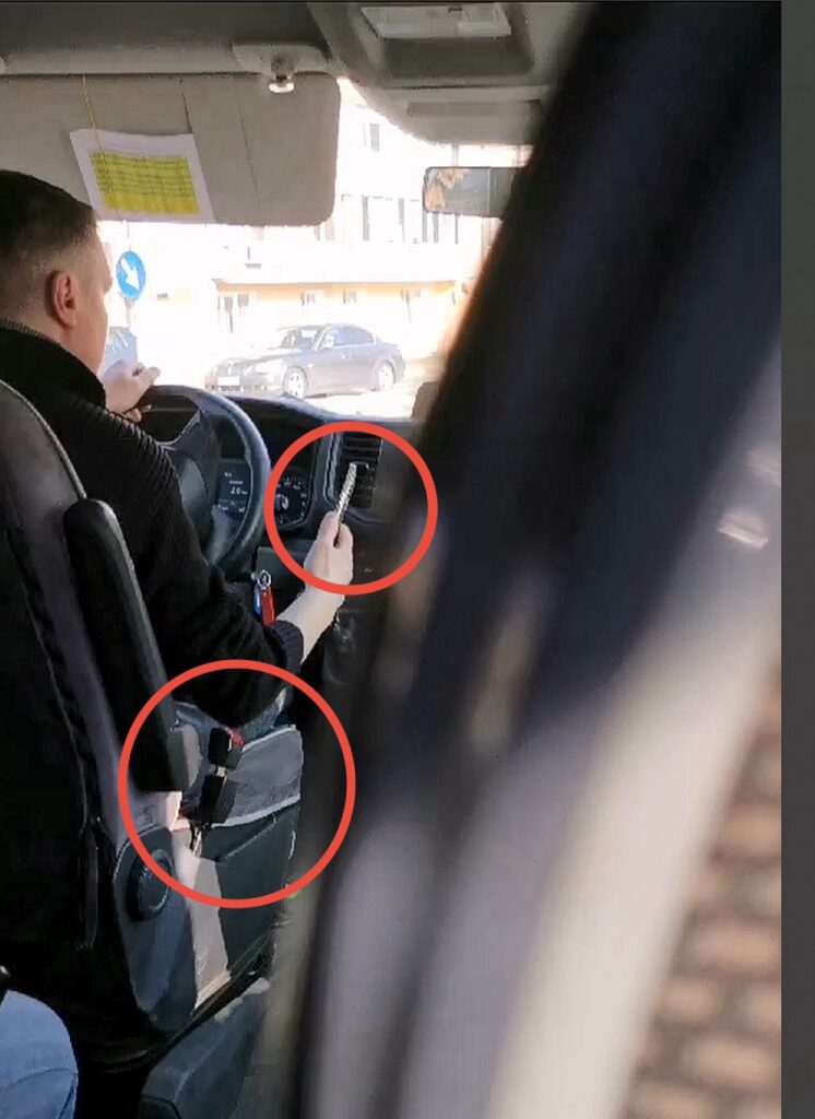 Mai exact, șoferul microbuzului a ales să pună siguranța călătorilor în pericol, vorbind la telefonul mobil și căutând numere în agendă. Din cauza neatenției, la un moment dat, șoferul era să producă și un mic accident.