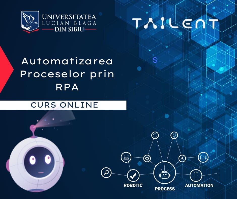 Universitatea „Lucian Blaga” din Sibiu, Facultatea de Științe Economice, anunță deschiderea înscrierilor pentru cursul transversal „Automatizarea proceselor prin RPA”, destinat studenților din ciclurile de licență, masterat și doctorat din cadrul facultății de Științe Economice, Inginerie și Științe.