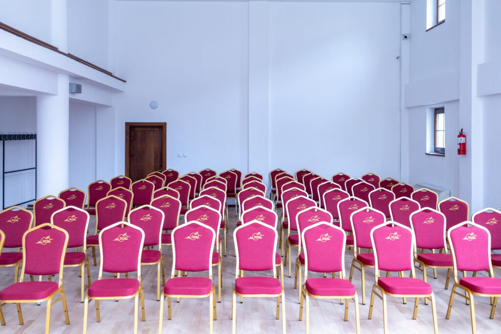 - Montarea unui sistem de proiecție retractabil, care permite transformarea sălii într-un cinematograf printr-o simplă apăsare de buton.
