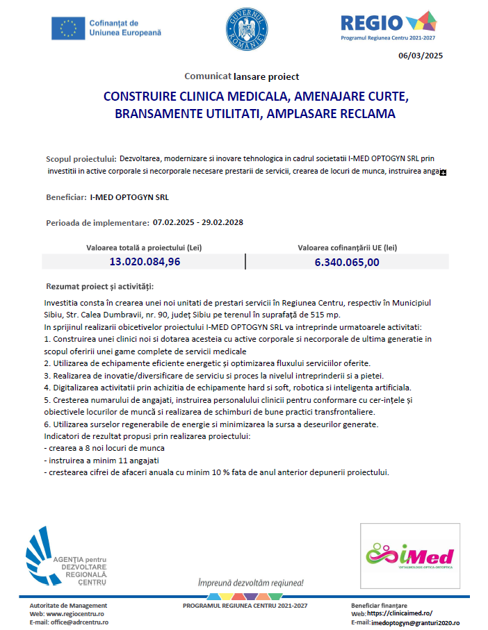 ANUNȚ: Construire clinică medicală, amenajare curte, branșamente utilități, amplasare reclamă