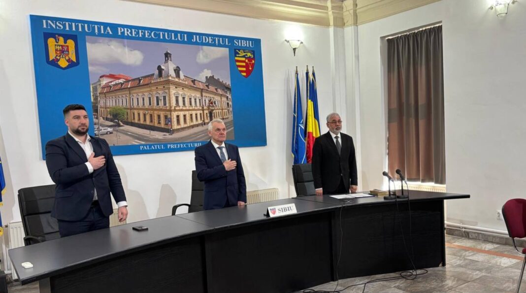 Deși Prefectura Sibiu NU a dorit prezența presei la investitura noului subprefect UDMR, Benedek Zacharie, a difuzat online câteva fotografii și un video. SIBIU INDEPENDENT a primit informația de la cei prezenți în sală, dar și confirmarea din fotografii că noul subprefect nu a dus mâna la inimă în timpul intonării Imnului Național. Nu este un gest obligatoriu prin lege, dar dă un semnal public. Prefectul Crețu și subprefectul Giubega au dus mâna la inimă.