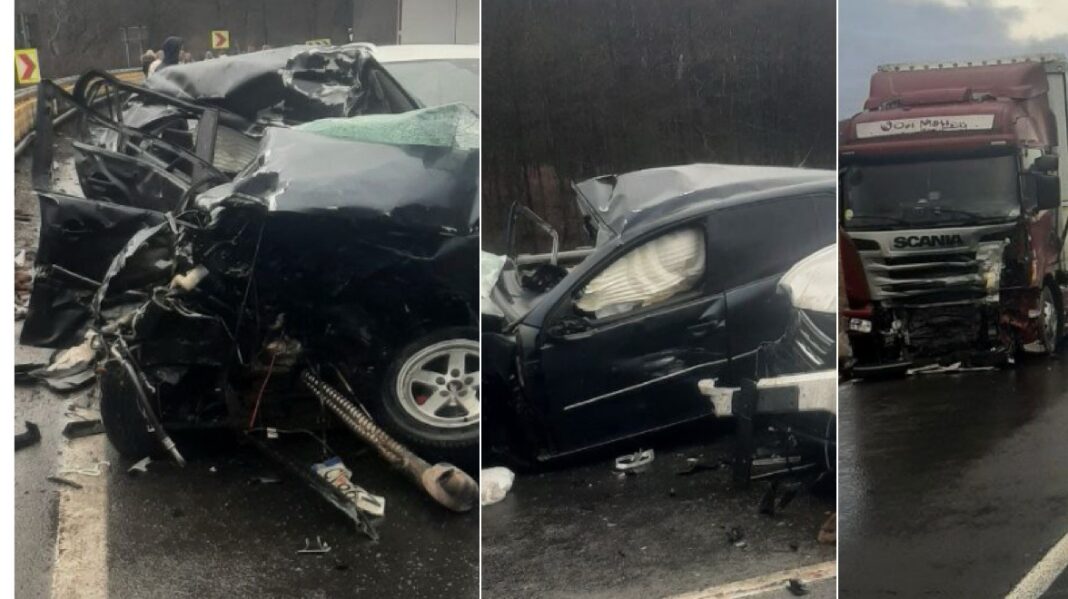 Din primele informații, acolo s-a produs un impact violent între două autoturisme și un autocamion. Din nefericire, două femei și-au pierdut viața iar alte 3 persoane au fost rănite. Traficul rutier este blocat total.