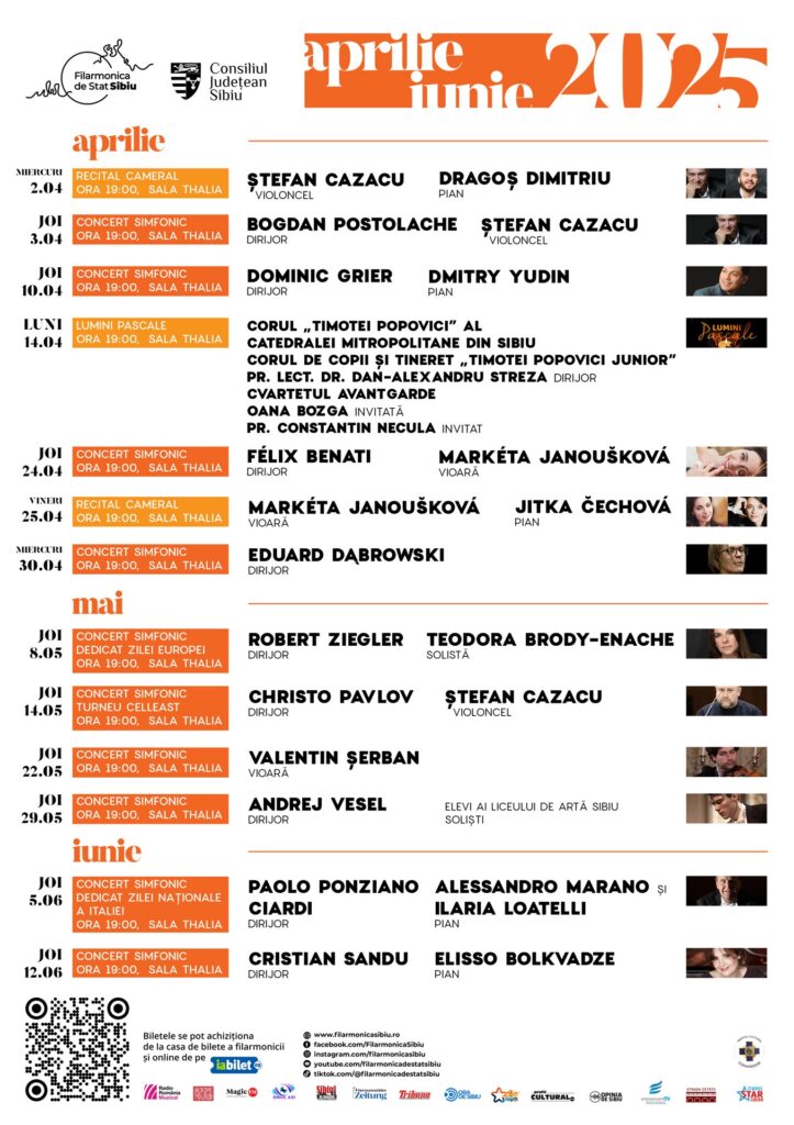 În următoarele trei luni, melomanii sibieni se vor bucura de zece concerte simfonice, două recitaluri camerale și un spectacol dedicat sărbătorilor pascale – cu participarea Corului Catedralei Mitropolitane și a preotului Constantin Necula.