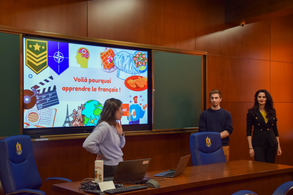 În cadrul Cercului științific de limba franceză al Academiei Forțelor Terestre „Nicolae Bălcescu”, coordonat de către doamna lect.univ.dr. Daniela Duralia, cadeții academiei au avut oportunitatea de a sărbători, pe data de 20 martie, Ziua Internațională a Francofoniei. Evenimentul a fost onorat de prezența doamnei Léa Euvrard, profesoară de limba franceză, reprezentantă a asociației franceze AGIRabcd și colaboratoare a Direcției de Cooperare pentru Securitate și Apărare din cadrul Ministerului francez pentru Europa și Afaceri Externe.