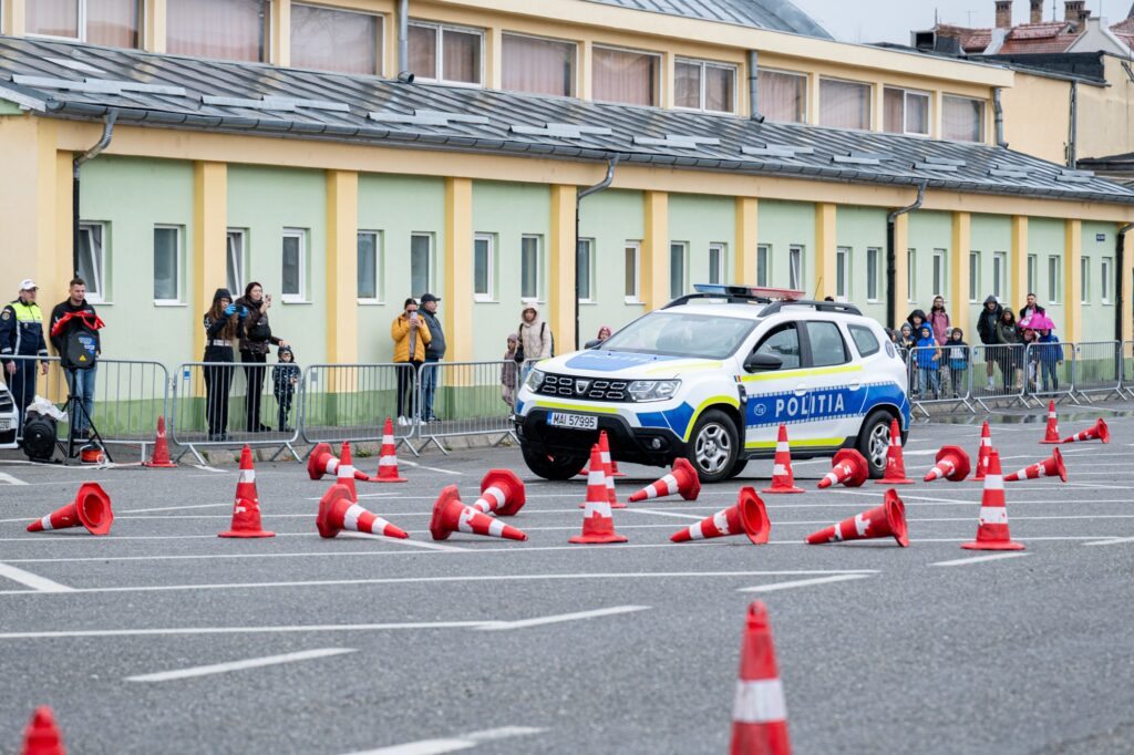 Evenimentul a culminat cu demonstrații impresionante de tactică și intervenție polițienească. Polițiștii Serviciului de Pregătire Profesională au prezentat tehnici de conducere în regim prioritar și defensiv, oferind publicului o fărâmă din provocările cu care se confruntă zi de zi în îndeplinirea misiunii lor.