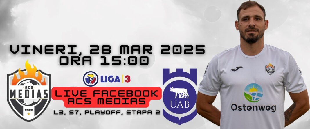 Partida ACS Mediaș – CS U Alba Iulia va avea loc pe Stadionul Gaz Metan 2 (8 Mai), vineri, 28 martie 2025, de la ora 15.00. Meciul va fi transmis pe pagina de facebook a clubului din Mediaș și preluat de Sibiu Independent.