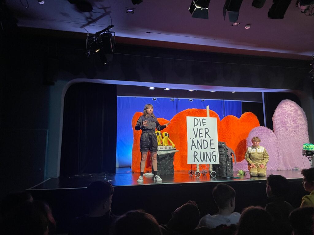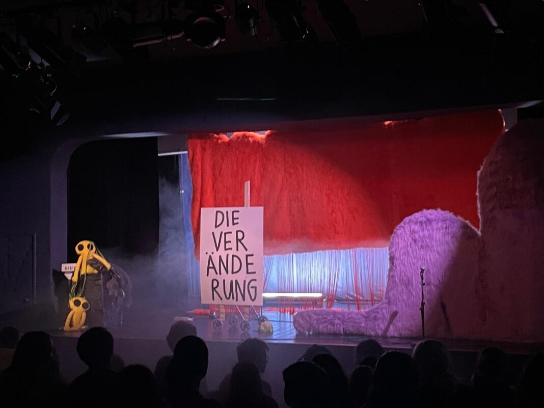 Într-o secvență surprinzătoare, un performer a intrat în scenă cu o undiță, aruncând plușuri în public, creând un moment de joacă plin de spontaneitate. Un alt moment marcant a fost „Schimbarea” (“Die Veränderung”), punctat de muzică rock oferită de DJ.