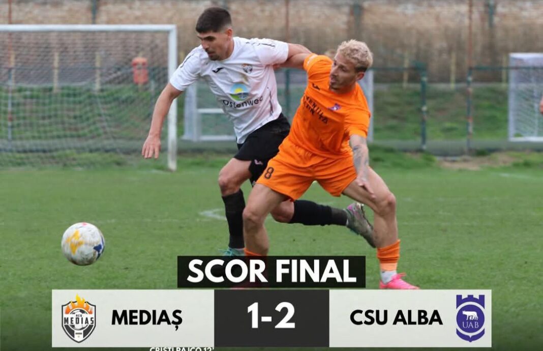 Etapa a doua din play-off-ul ligii a treia, seria a șaptea, a programat partida ACS Mediaș – CS U Alba Iulia. Scorul final a fost 1-2.