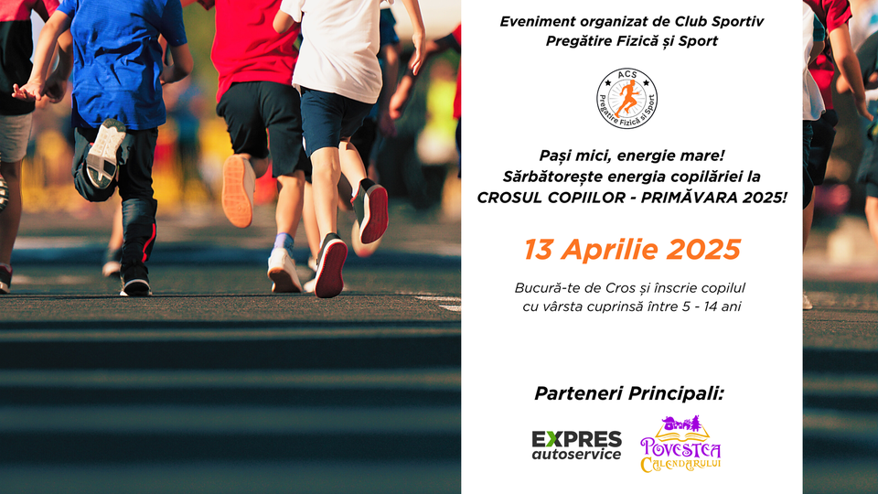 Clubul Sportiv Pregătire Fizică și Sport Sibiu orgaizează „Crosul Copiilor – Primăvara 2025”, desfășurat în 13 aprilie 2025, în Parcul Subarini. La eveniment sunt invitați toți copiii cu vârste cuprinse între 5 și 14 ani.