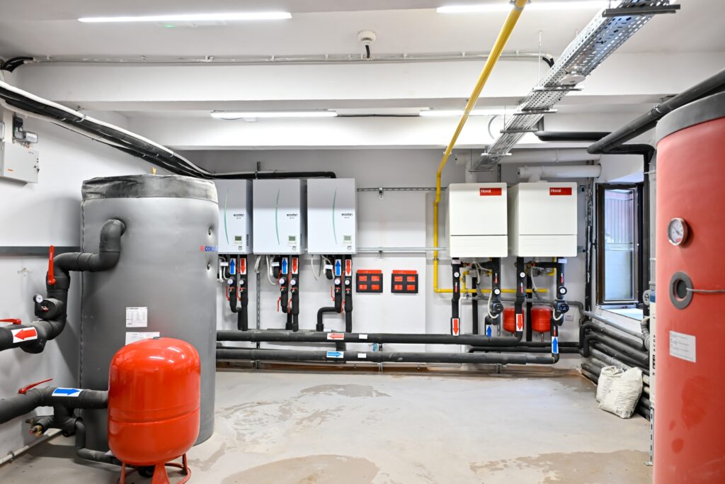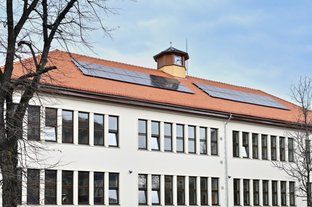 - Dotări pentru eficientizarea energetică: panouri fotovoltaice pentru energie electrică, pompe de căldură aer-apă, ventiloconvectoare în săli, recuperatoare de căldură, un Building Management System (prin care este reglat și controlat consumul de utilități), corpuri de iluminat cu LED, înlocuirea tâmplăriei cu una de aluminiu cu geam termoizolant, termoizolarea fațadei, a pereților subsolului și a planșeului.