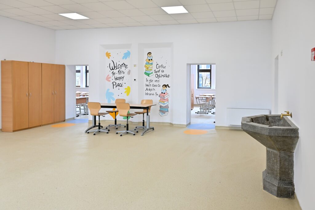 Dotarea cu mobilier și echipamente IT (computere, table inteligente, sound bar, routere WiFi, etc) a fost realizată în cadrul unui alt proiect finanțat din fonduri europene, prin care Primăria Sibiu a achiziționat astfel de dotări pentru toate unitățile de învățământ preuniversitar din Sibiu, în funcție de cererile formulate de conducerea acestora. Reamintim că astfel de lucrări, de eficientizare energetică rămân în curs la 6 unități de învățământ, planificate să se încheie anul acesta: grădinița Elefănțelul Curios, școala N. Iorga, școala nr. 25, Colegiul A. Șaguna, Colegiul O. Goga și Liceul O. Ghibu. Pentru alte 4 clădiri de grădinițe, 2 clădiri de școli și la fostul orfelinat Maria Tereza, finanțarea este obținută și urmează începerea lucrărilor.