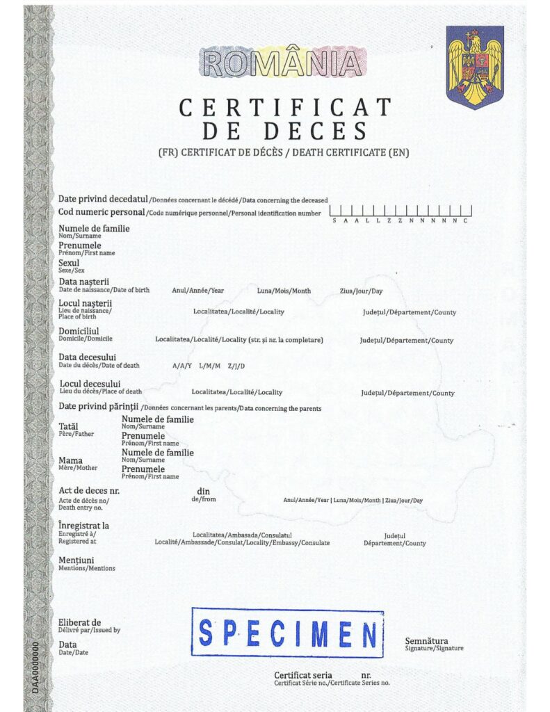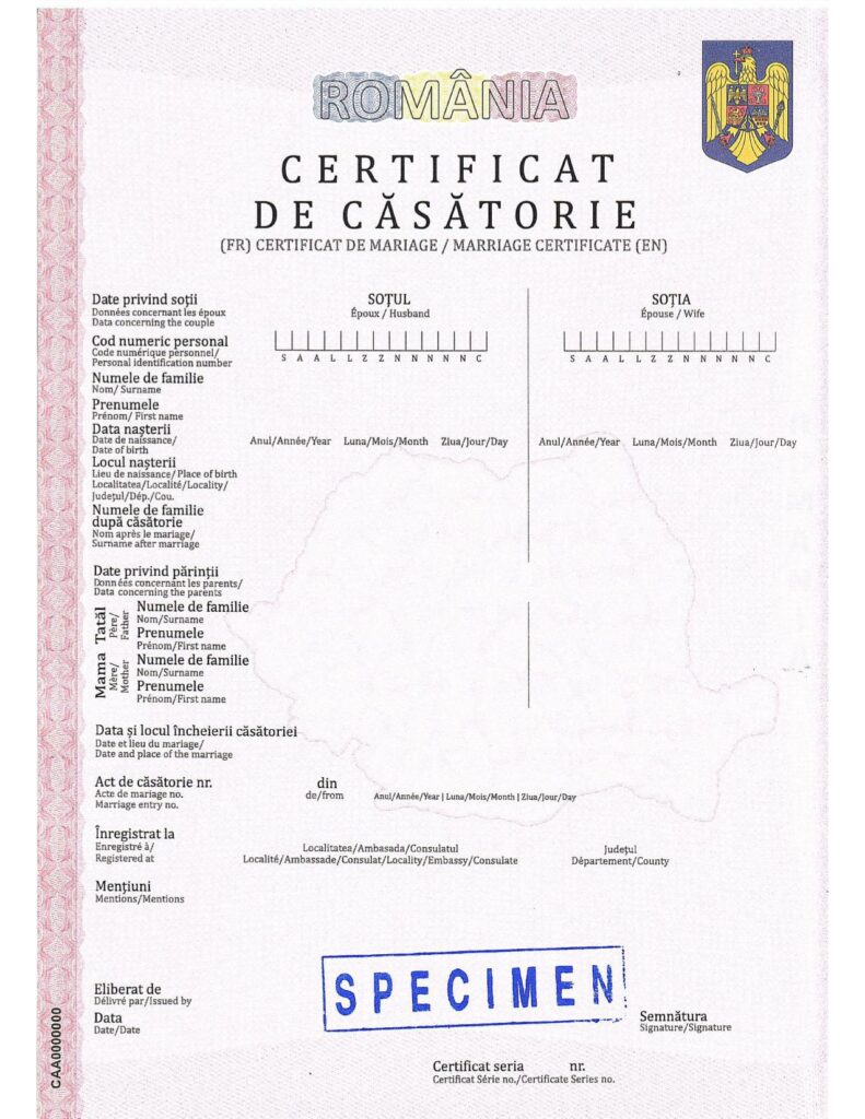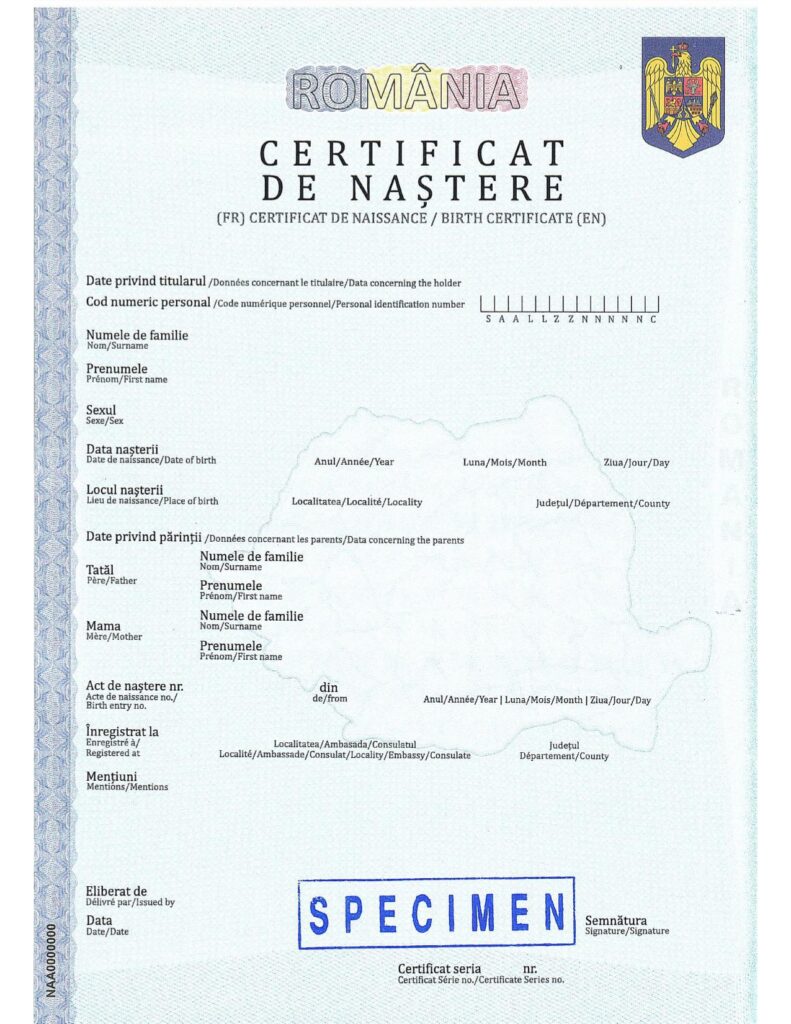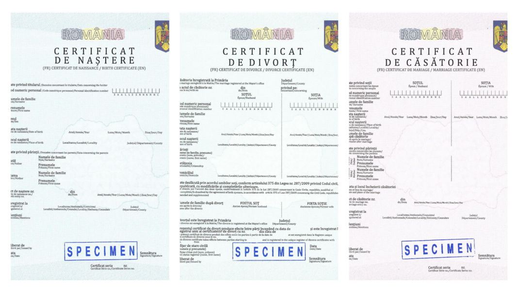 - eliberarea certificatelor de stare civilă/extraselor multilingve/formularelor standard.
