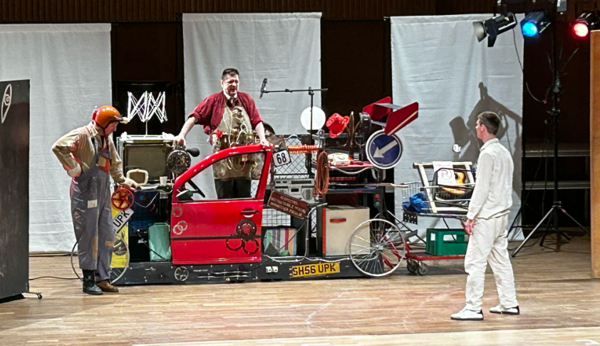 Într-un cadru neașteptat, într-un atelier auto, apare un personaj inedit: un domn care era geniu, dar turmentat care construiește o mașină a timpului. O jurnalistă curioasă și ușor isterică, îl intervievează, iar discuția se mută subtil către simbolistica „scrisorii pierdute” din zilele noastre – făcând legătura între trecutul clasic și prezentul satirizat.