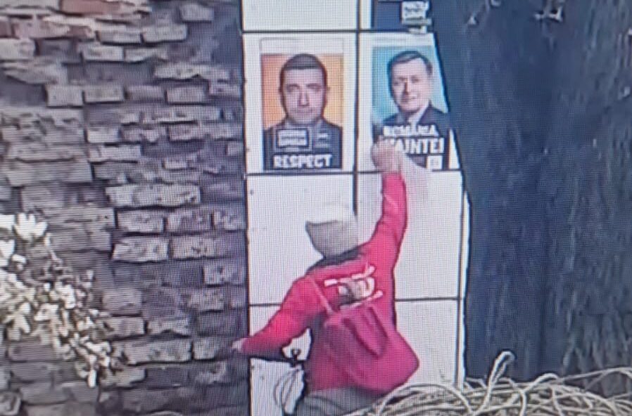 Vineri, 4 aprilie, la ora 03.10 dimineața, o persoană a rupt afișe electorale de pe panotajul amplasat pe bulevardul Victoriei. O patrulă a Poliției Locale i-a legitimat și i-a predat Inspectoratului Județean de Poliție. După verificări, s-a constatat că persoana în cauză a rupt un alt afiș, în aceeași dimineață, la ora 01.59, de pe același panou.