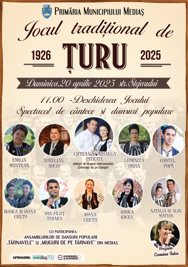 Primăria Municipiului Mediaș organizează tradiționalul joc de Țuru și în acest an, în cartierul Moșnei, în data de 20 aprilie 2025, prima zi a Sărbătorii Pascale.