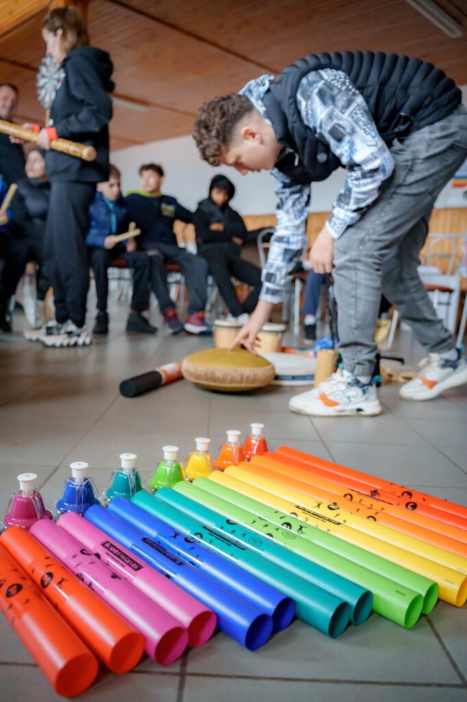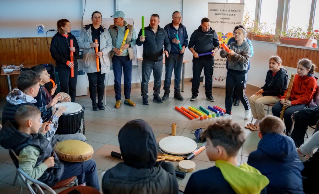 În cadrul taberei, copiii au participat la activități terapeutice prin muzică – un spațiu sigur și creativ în care emoțiile au fost exprimate nu prin cuvinte, ci prin sunete, ritm și vibrație. Pentru acești copii, muzica devine o punte către lume, o formă de eliberare și de exprimare sinceră.