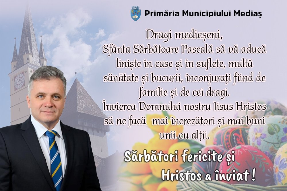 „Dragi medieșeni, Sfânta Sărbătoare Pascală să vă aducă liniște în case și în
