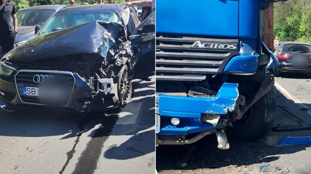 Conform primelor date, două autoturime și un autocamion au intrat într-o coliziune violentă. Polițiștii rutieri sibieni au stabilit faptul că, în timp ce conducea un autoturism spre ieșirea din Medias, o femeie în vârstă de 31 de ani, din Mediaș, s-a angajat în depășirea unei coloane de vehicule, a intrat în coliziune frontală cu un autocamion condus din sens opus de către un bărbat de 33 de ani, din județul Mureș și a fost proiectată într-un alt autoturism, condus de un bărbat în vârstă de 53 de ani, din Turnu Roșu.