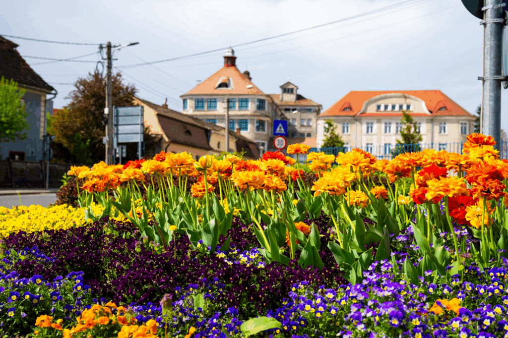 Primăvara a adus culoare în Sibiu, odată cu înflorirea celor aproape 50.000 de lalele, narcise și panseluțe plantate toamna trecută. Florile au fost distribuite în sensurile giratorii și în alte zone verzi din oraș, iar combinația dintre soarele din ultimele zile și ploile recente le-a oferit condițiile ideale pentru a se deschide.