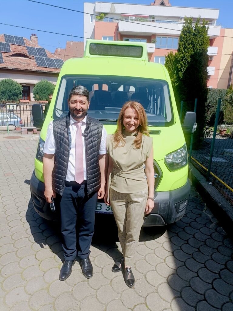 Microbuzul a fost achiziționat de Consiliul Județean Sibiu, din fondurile nerambursabile obținute prin PNRR, alături de alte 40 de microbuze electrice deja distribuite școlilor din județ.