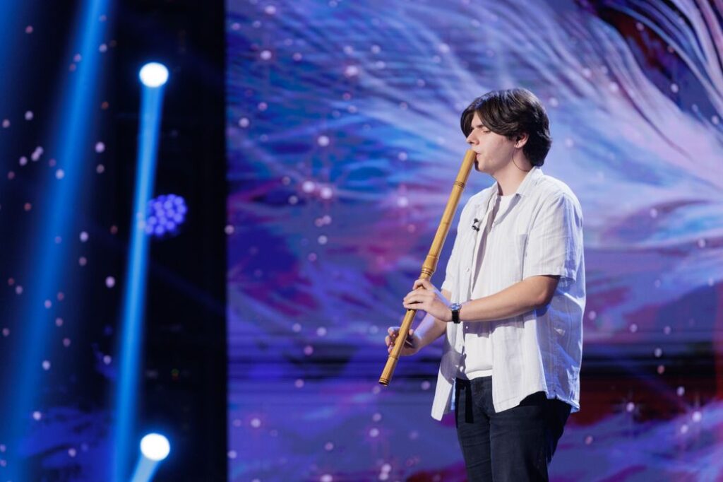 Radu Scutelnicu, un tânăr de 20 de ani din Sibiu, a reușit să impresioneze juriul de la „Românii au talent” cu un moment plin de emoție la caval. Deși studiază chitara la Conservatorul din Amsterdam, Radu a învățat singur să cânte la acest instrument tradițional românesc, inspirându-se din muzica lui Călin Han (Subcarpați), Bogdan Simion și Zdob și Zdub.