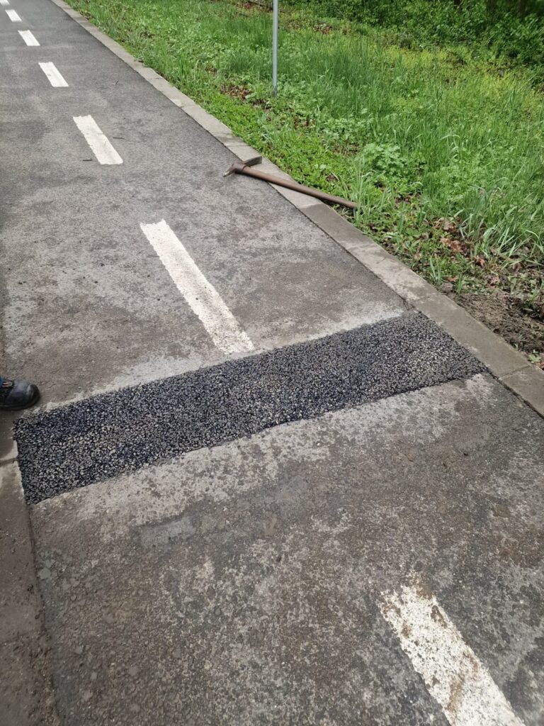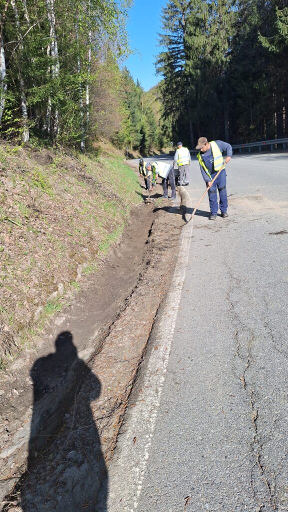 curățire șanțuri, rigole executată manual, tăiere rosturi, montat tub PVC, plombări cu mixtură stocabilă pe DJ 106A ieșire Sibiu – Păltiniș