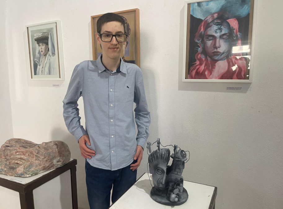 Arcaș Sebastian (Șelimbăr): „Am luat premiul III la categoria sculptură, iar lucrarea mea a fost inspirată din fraza lui Einstein și anume în știință, imaginația depășește logica. Le transmit celor din Sibiu să fie ei înșăși și să nu copieze pe nimeni.”