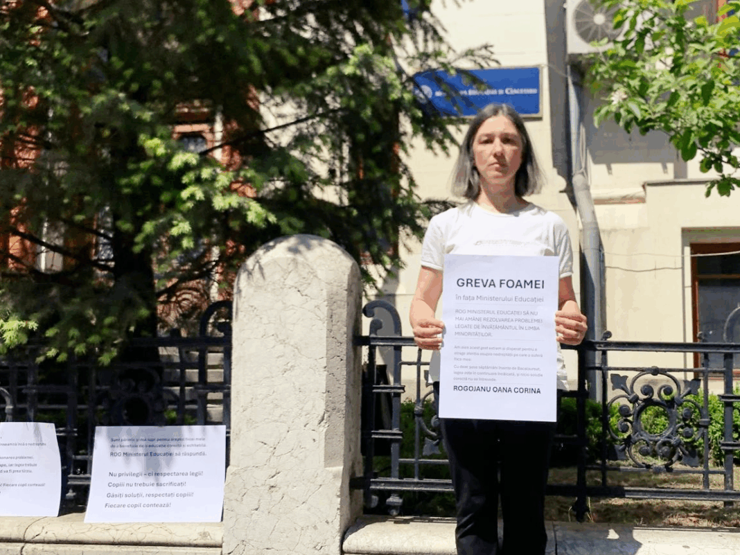 Oana Corina Rogojanu, mama unei eleve de clasa a XII-a de la Colegiul Național „Samuel von Brukenthal” din Sibiu, a intrat marți, 29 aprilie, în greva foamei în fața Ministerului Educației, acuzând nerespectarea legii în școlile cu predare în limba germană. Părintele susține că, deși unitatea școlară este acreditată ca școală cu predare în limba maternă, în realitate peste jumătate dintre discipline sunt predate în limba română, iar mulți dintre profesori nu sunt calificați să predea în limba germană. Aceasta cere ca proba de Limba Germană Maternă de la Bacalaureat să devină opțională: „Susținerea probei E.b. la Limba Germană Maternă reprezintă o evaluare incorectă și nealiniată cu pregătirea reală a elevilor” – se arată în scrisoarea transmisă Ministerului Educației, potrivit Edupedu.ro.