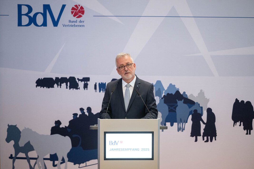 Președintele BdV, Dr. Bernd Fabritius, originar din Sibiu, a avut o intervenție apreciată, în care a evidențiat importanța istorică și culturală a expulzaților și a minorităților germane în construirea unei Europe unite și democratice. Fabritius a criticat absența reprezentanților Verzilor de la eveniment și a reafirmat opoziția fermă a BdV față de orice colaborare cu partidele extremiste, de stânga sau de dreapta, pe fondul pozițiilor lor față de războiul din Ucraina și față de valorile europene.
