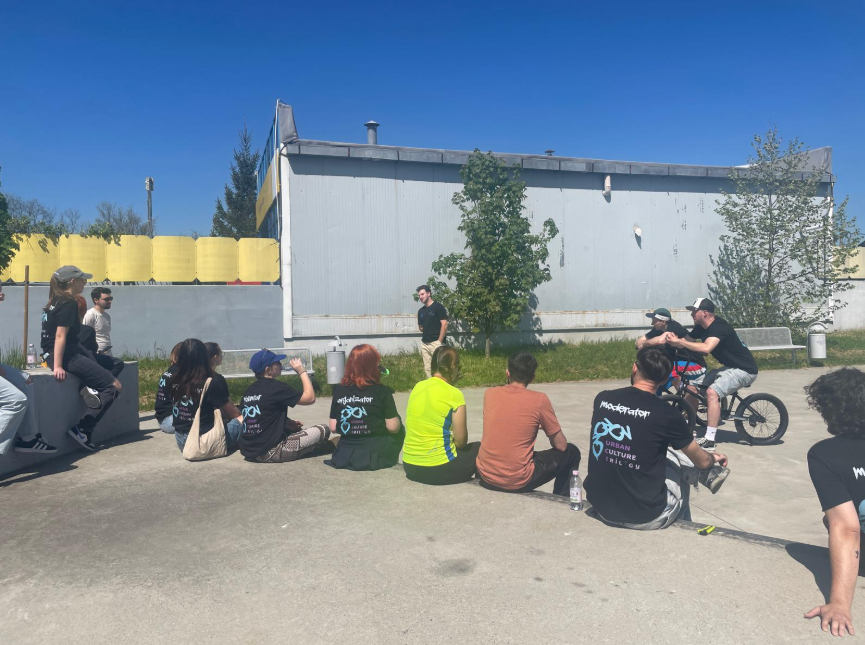 Într-o zi călduroasă, 25 de tineri și copii însoțiți de părinți participanți la eveniment, au beneficiat de un cadru informal și oportunități multiple de interacțiune, cunoaștere și spectacol live pe biciclete. Workshop-ul a început la ora 11:30 și a constat în discuții libere cu riderii, trik-uri, graffiti susținut de doi street artiști și alte surprize pentru participanți.