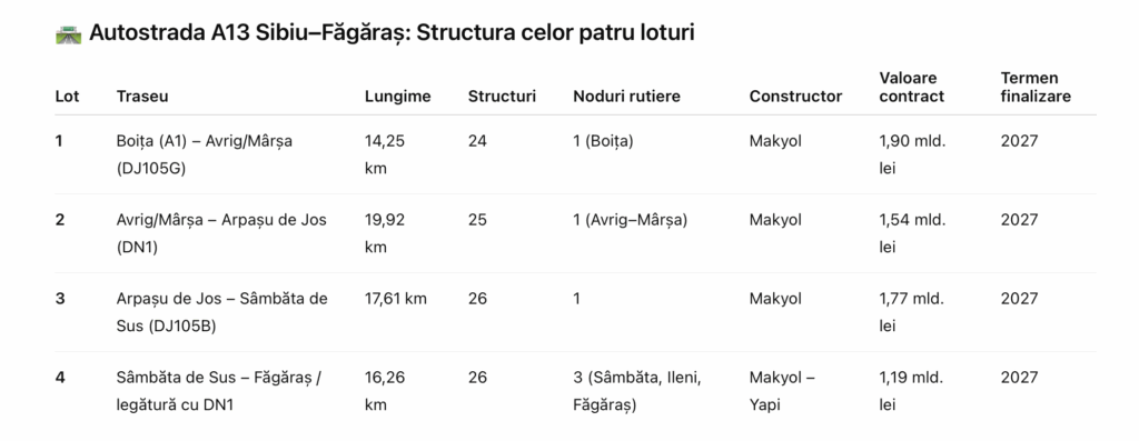 Contractul are o valoare de 1,54 miliarde de lei (fără TVA) și este finanțat prin fonduri europene nerambursabile din cadrul Programului Transport 2021–2027. Durata estimată a execuției este de trei ani. Lotul 2 este al doilea din cele patru care compun Autostrada Sibiu – Făgăraș, parte a unui proiect mai amplu ce va lega Sibiu de Bacău prin A13, trecând prin Brașov. Întregul sector Sibiu – Făgăraș se întinde pe 68 km și a fost atribuit constructorului Makyol, din Turcia. Investiția totală estimată pentru acest tronson este de aproximativ 7 miliarde de lei.