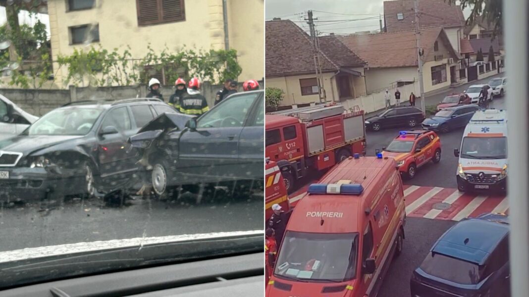 Conform primelor date, două mașini au intrat într-o coliziune violentă, fiind avariate alte două mașini parcate. La fața locului intervin mai multe echipaje de pompieri ISU și ambulanțe SMURD.