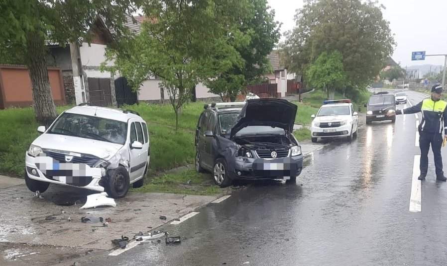 O coliziune puternică între două mașini s-a produs în jurul amiezii, pe DN 14, în localitatea sibiană Târnava.