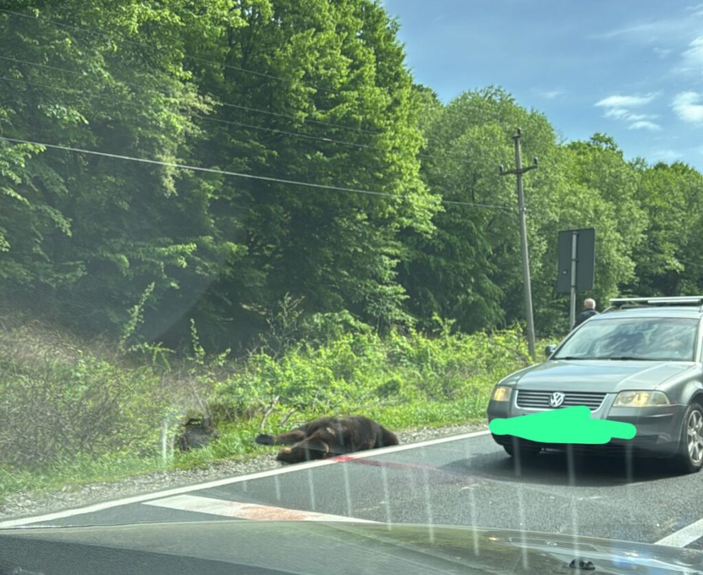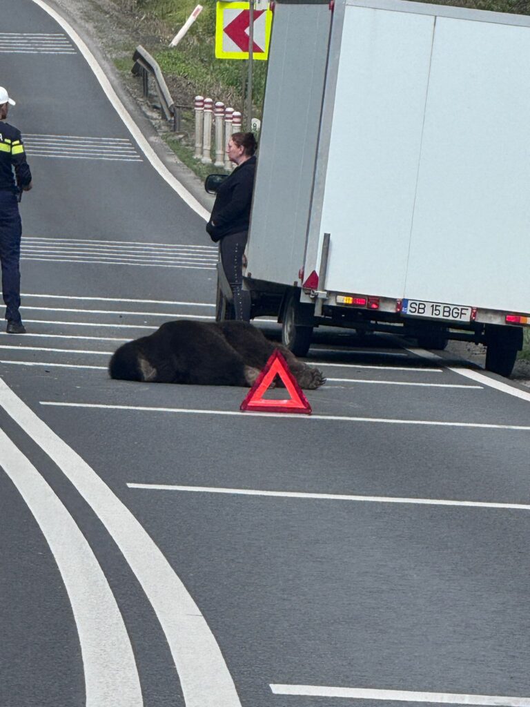 Urs lovit pe drumul național la Hula Bradului