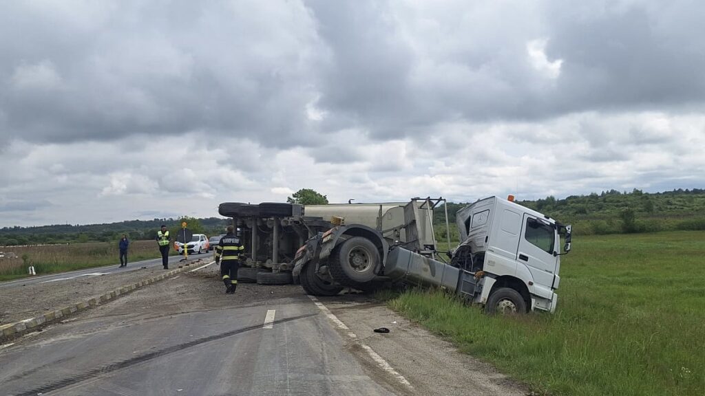 Conform polițiștilor rutieri sibieni, în timp ce conducea un autocamion pe un drum secundar un bărbat în vârstă de 35 de ani din municipiul Sibiu a pătruns în drumul național fără să acorde prioritate și a intrat în coliziune cu un alt autocamion, condus dinspre Sibiu spre Brașov, de către un bărbat în vârstă de 67 de ani, din Racovița, acesta din urma răsturnându-se în afara carosabilului.