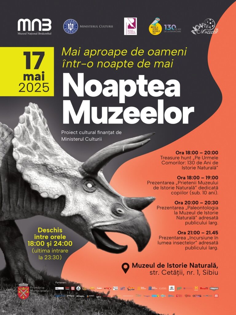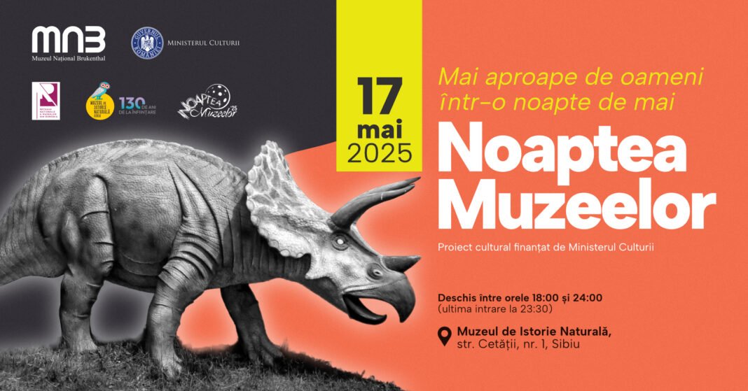Pentru a sărbători cei 130 de ani de istorie naturală la Sibiu, cu ocazia evenimentului cultural „Noaptea Muzeelor” din data de 17 mai 2025, Muzeul Național Brukenthal invită publicul sibian, și nu numai, să viziteze gratuit sediul Muzeului de Istorie Naturală din Sibiu în intervalul orar 18-24, ultima intrare la 23:30.