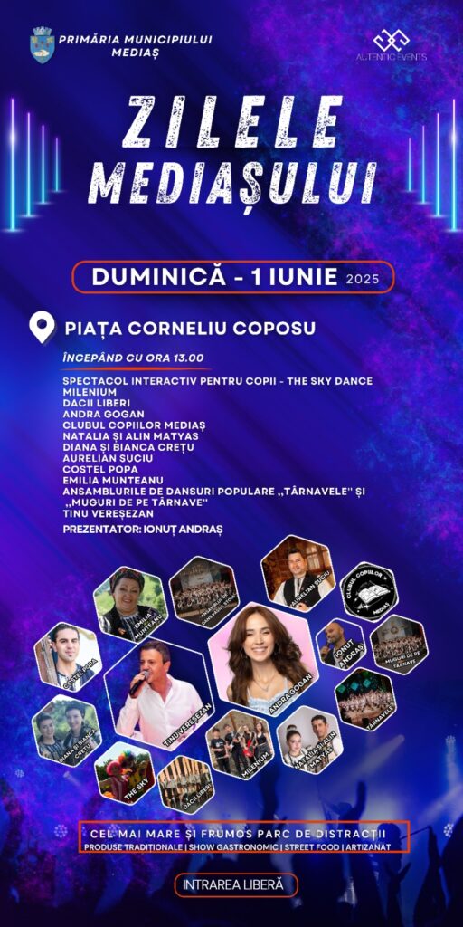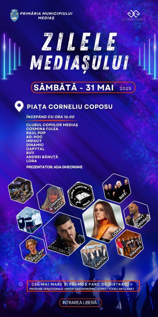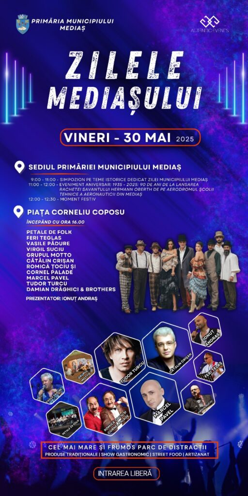 Evenimentul „Zilele Mediașului 2025” este organizat de Primăria municipiului Mediaș cu sprijinul Asociației Mediaș 750 de Ani.