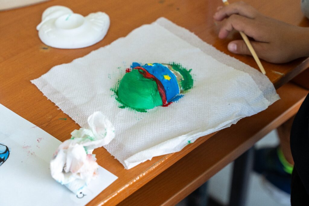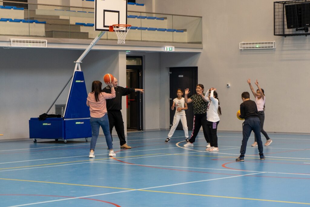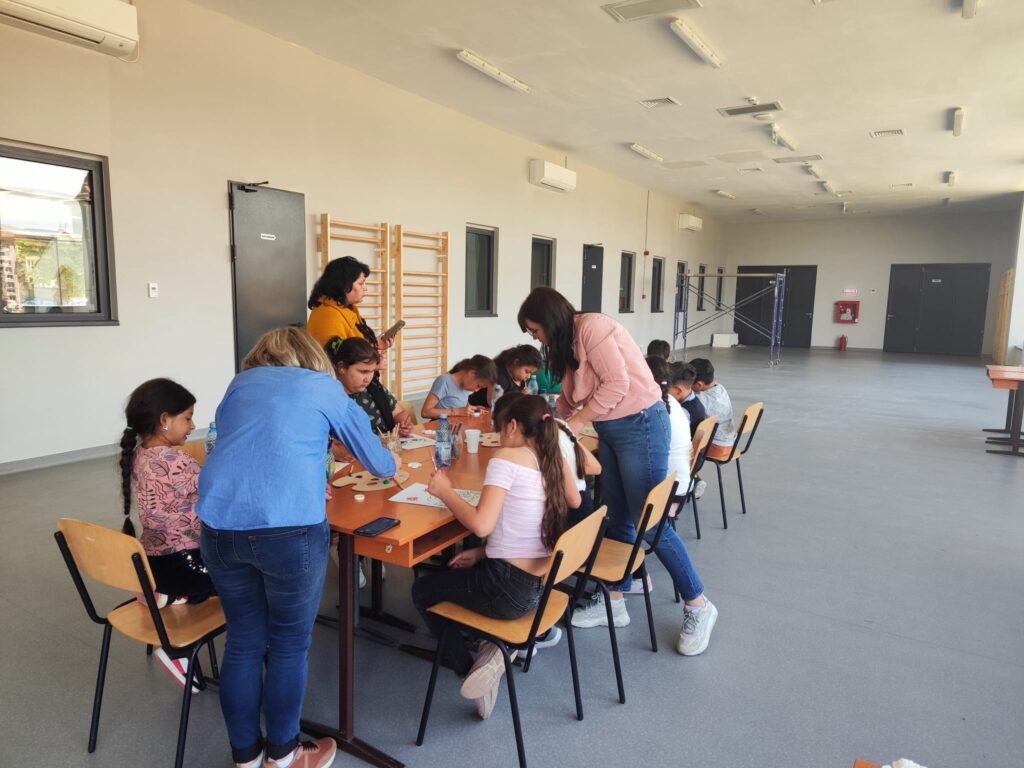 15 dintre copiii beneficiari ai servicilor oferite de Centrul de zi pentru copii, au participat la activități interactive în sala multifuncțională (pictură pe figurine din ipos și desen) și la diferite activități sportive în sala de sport și pe terenul de sport exterior (fotbal, volei, badminton și baschet).