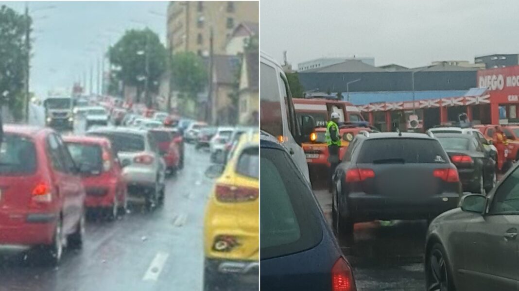 Traficul rutier este îngreunat pe Șoseaua Alba Iulia din municipiul Sibiu după ce un motociclist s-a dezechilibrat și a căzut pe partea carosabilă.
