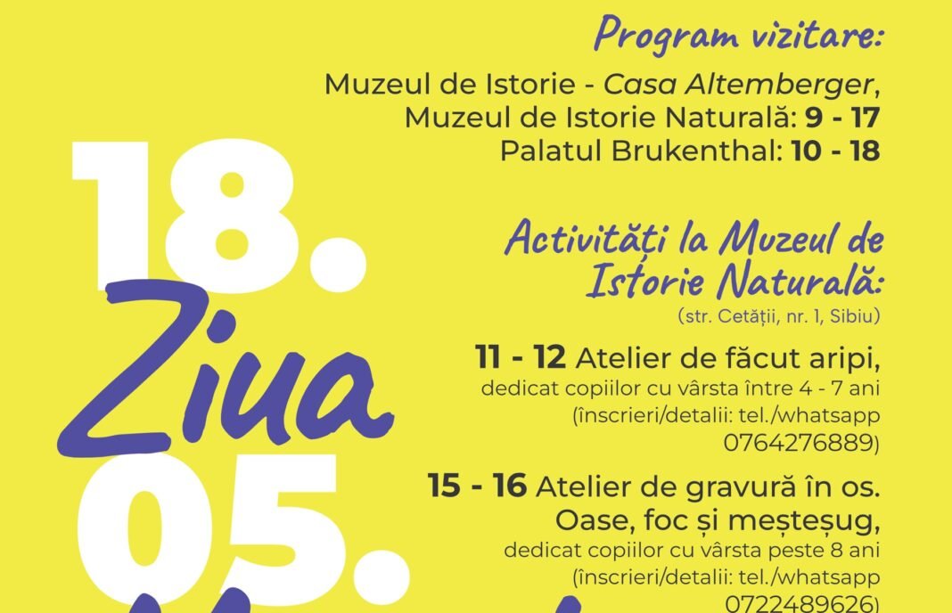 Orele 15-16: Atelier de gravură în os: Oase, foc și meșteșug – dedicat copiilor cu vârsta peste 8 ani (înscrieri/detalii: telefon/WhatsApp: 0722489626).