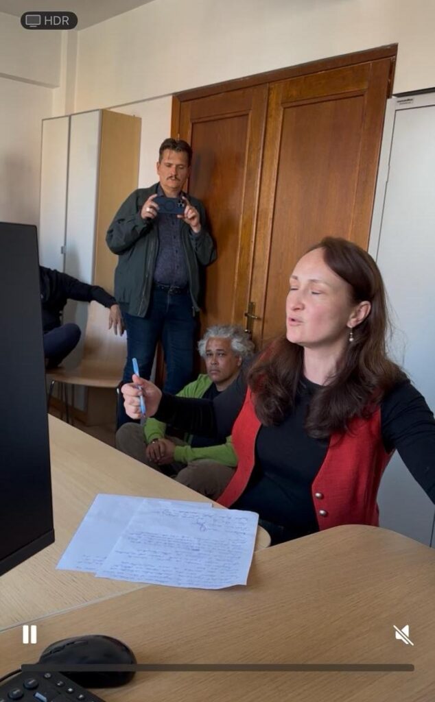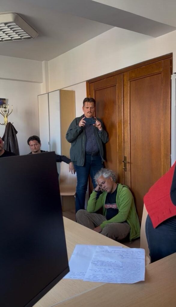 Director: … blocați dumneavoastră ușa… colegi dragi, aveți grijă, cred că nu înțelegeți, ăsta e sechestru, e foarte grav ce se întâmplă acuma, nu știu dacă conștientizați, nu putem bloca o ușă.