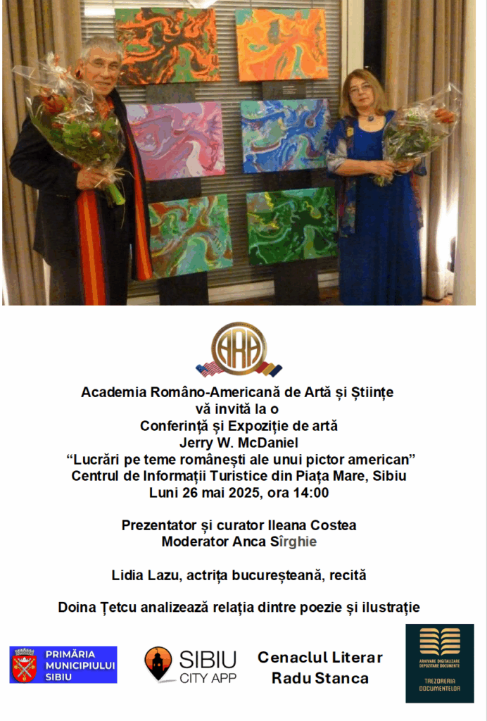 Evenimentul se desfășoară în contextul expoziției „Lucrări pe teme românești ale unui pictor american”, semnată de artistul Jerry W. McDaniel. Keynote Speaker-ul conferinței este Prof. Ileana Costea, curatorul expoziției, vicepreședinte al Academiei Româno-Americane de Arte și Știință și Profesor Emerit la Universitatea Northridge din California (CSUN), SUA. Moderatorul evenimentului va fi conf. univ. dr. Anca Sîrghie, Președinta Ligii Culturale din Sibiu.